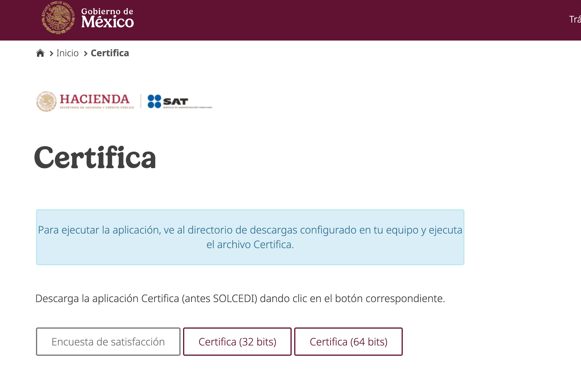 Para crear un sello digital, deberás descargar Certifica—la aplicación oficial del gobierno mexicano para la emisión de sellos—. Para ello, deber ir a la siguiente página del SAT donde podrás descargar la versión más actualizada de Certifica.