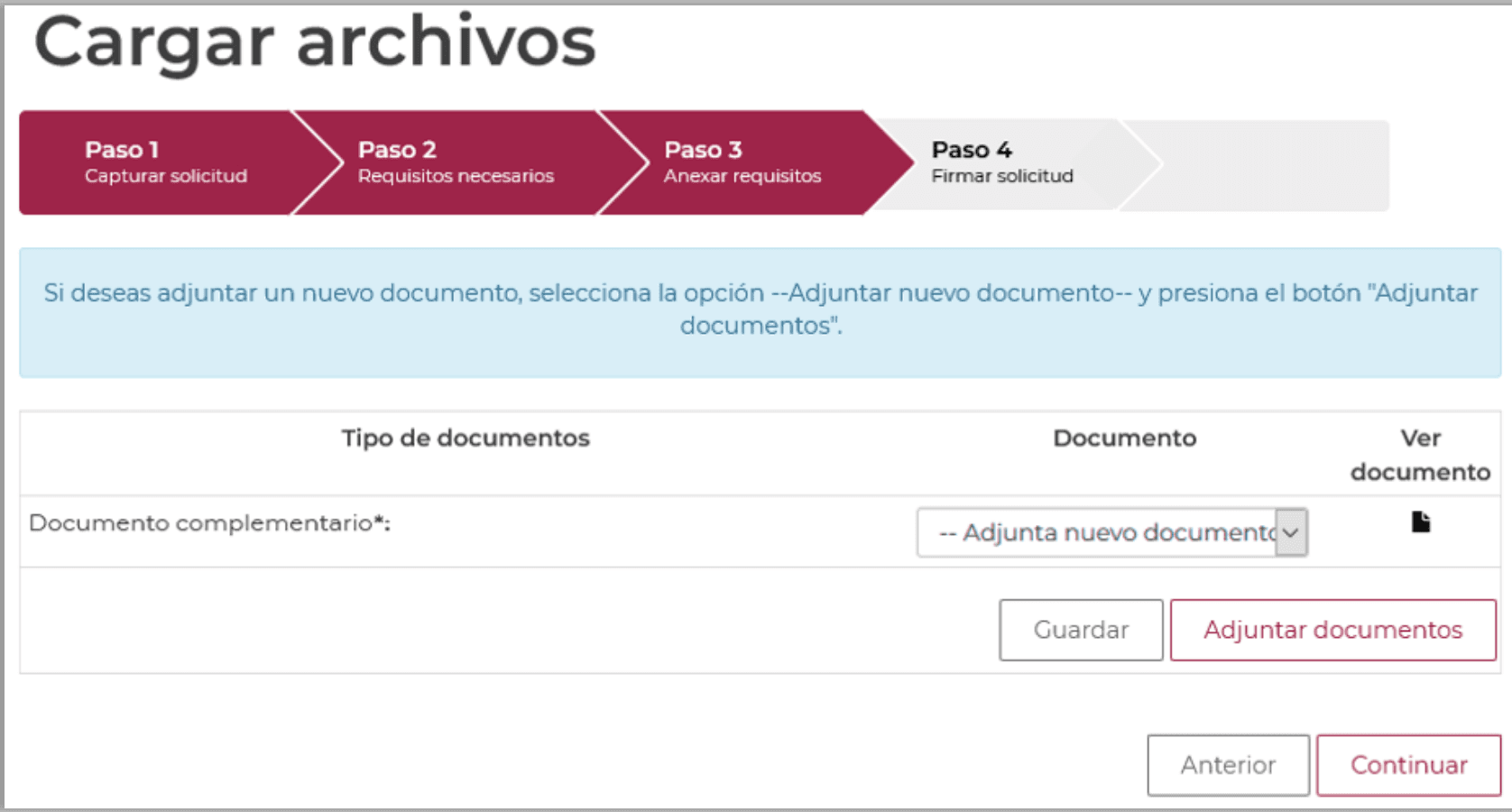 Cuando hayas subido todos los documentos correspondientes, presiona “Continuar” para pasar a la última parte del proceso.
