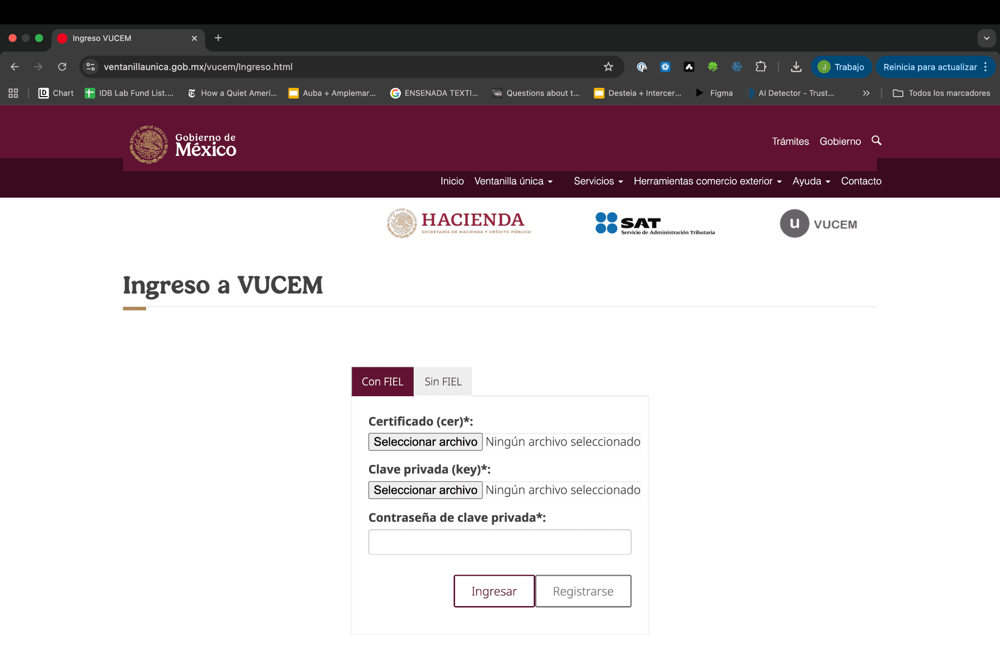 El primer paso para presentar la Manifestación de Valor Electrónica es entrar a VUCEM, el sitio oficial del gobierno mexicano para procesos aduaneros. El enlace para acceder a VUCEM directamente es el siguiente: https://www.ventanillaunica.gob.mx/vucem/Ingreso.html
